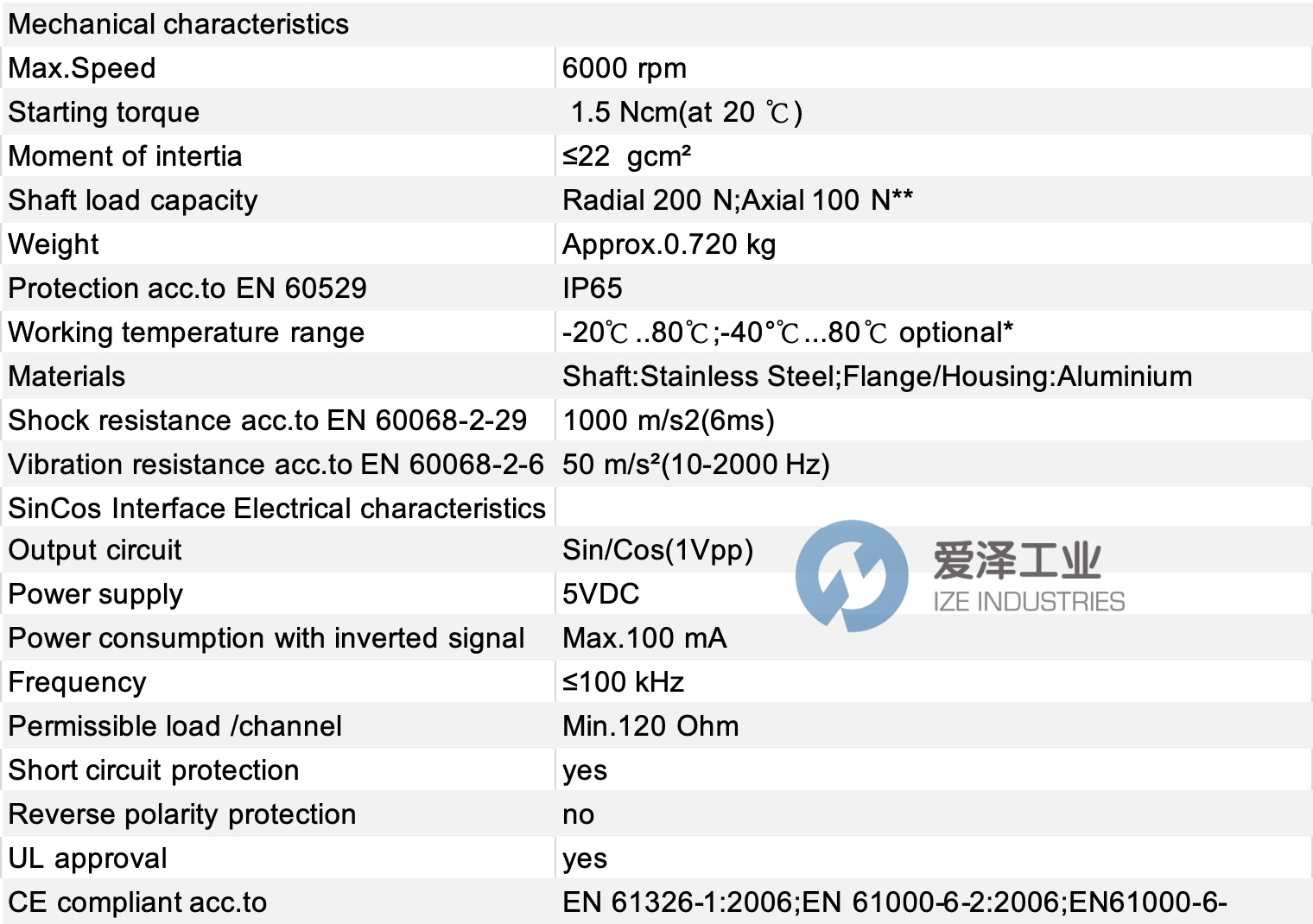 HEIN LANZ編碼器11-A0HN系列技術規格