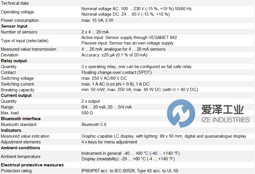 VEGA控制器VEGAMET 842系列技術參數