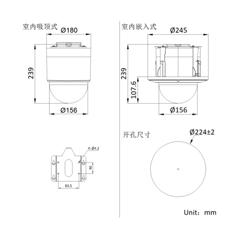 尺寸 ?180 × 239 mm(室內(nèi)吸頂式),?245 × 239 mm(室內(nèi)嵌入式)