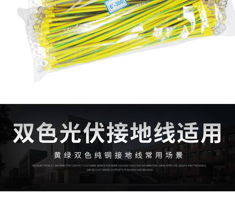 默認孔徑5MM,可定制任意孔徑和長度,店主定制。請用戶放心訂購,交期下單后一般5萬條4天內,10萬條6天內,20萬條10天內,小批量訂單當天下單次日發貨,特殊節假日順延。,我們只專注接地線制造,只賺取企業應得那點加工費,只要你有量,就敢給低價格,拒 非標虧方線定制,訂貨前請給出具體尺寸規格(如所需的線截面積?長度 ?端子孔徑大小?端子壓接處是否帶護套。本廠接地線全部為純銅國標線量大***采用BVR黃綠雙色線制作以方便我們報價)。