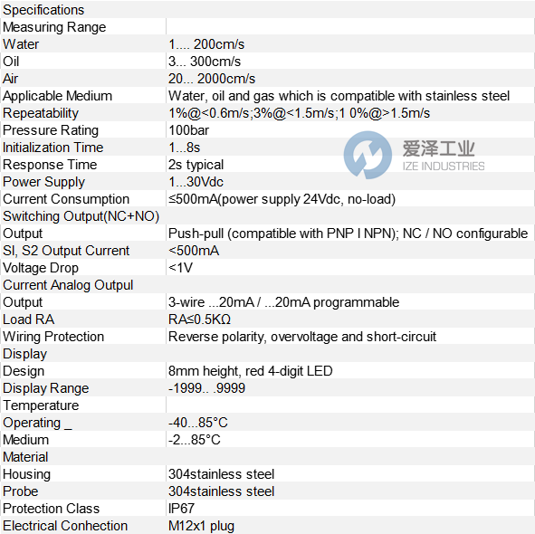 基于熱力學原理,FN3000在探頭內部設有2個溫度傳感器:一個用于測量介質溫度,另一個比其所射入的介質溫度高幾度。當介質流動時,傳感器中產生的熱量通過 測量這兩個傳感器之間的差值即可獲得流量。與傳統產品相比,FN3000測量范圍更寬,溫度漂移更小,并且具有百分比或流速顯示。全金屬外殼。高亮數字LED,雙鍵以及用戶友好的界面,多個過程連接。330°可旋轉指示器。