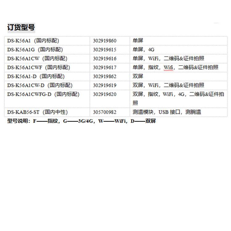 DS-K56A1(國內標配) 302919860 單屏