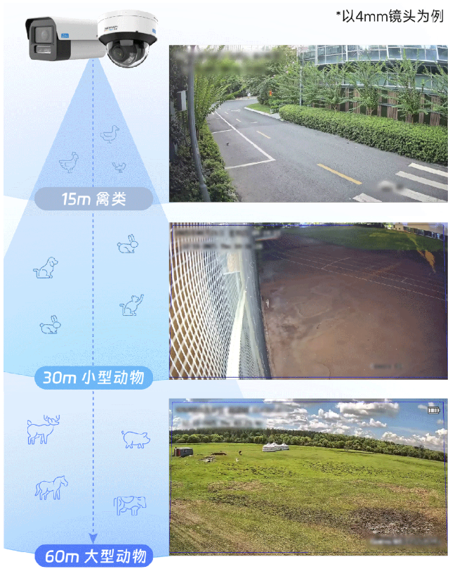 除了傳統安防業務中的人、機動車、非機動車智能防入侵,L1大模型攝像機全新升級動物檢測,通過對目標外形、運動特征等的綜合分析,精準檢出禽類、小型、中大型動物,助力野生動物保護、農業養殖等數字化管理。