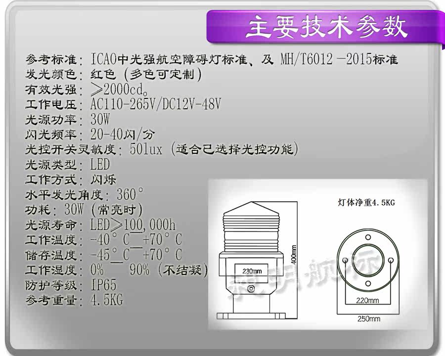產品名稱:中光強航空障礙燈 / 智能 特大燈