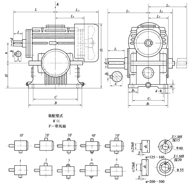 例 蝸桿在蝸輪之下,中心距為200mm,公稱傳動比為10,第二種裝配型式,有風扇冷卻的平面