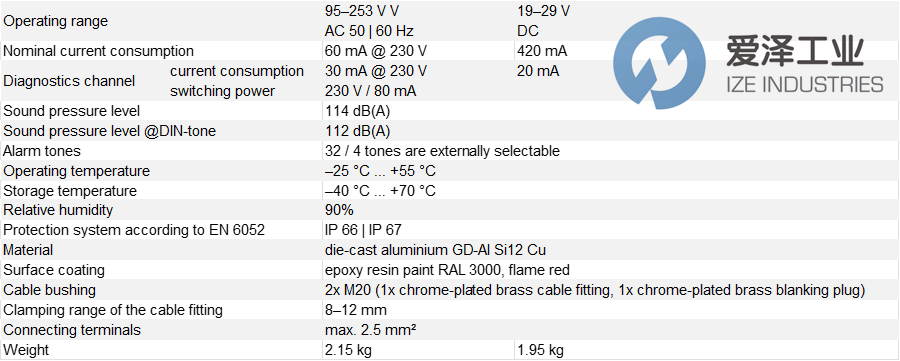 PFANNENBERG聲光報警器DS10-SIL系列技術參數