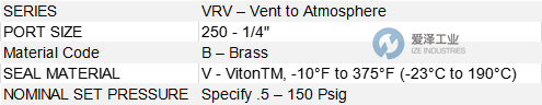 GENERANT閥VRV-125B-V-15技術參數