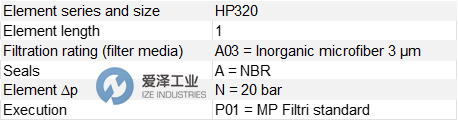 MP FILTRI濾芯HP3201A03ANP01技術(shù)參數(shù)