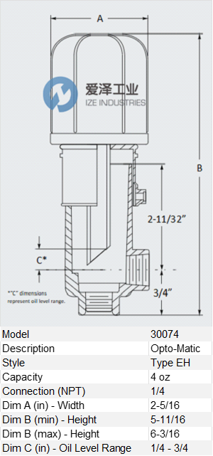 TRICO油杯OPTO-MATIC系列30074技術參數及介紹