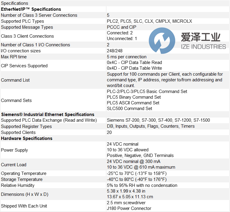 PROSOFT網關PLX32-EIP-SIE技術參數及介紹